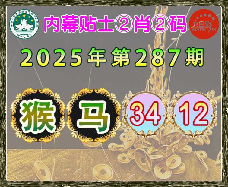 287期:《内幕贴士》 ♣️②肖②码 ♣️【猴马】【34.12】开:猴34准
