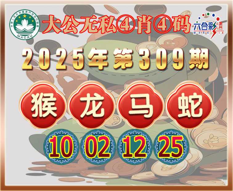 309期:『大公无私』 🧶④肖④码🧶【猴龙马蛇】【10.02.12.25】开:鼠06错