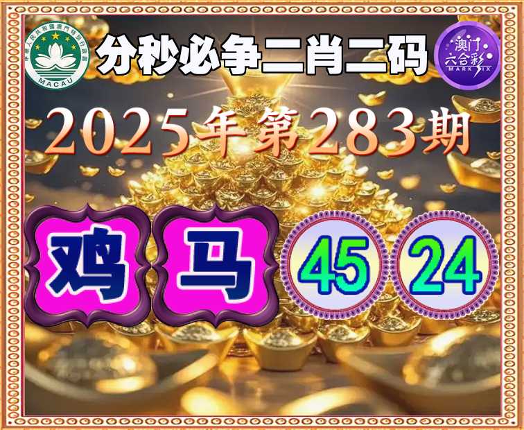 283期:【分秒必争】 🏆二肖二码🏆【鸡马】【45.24】开:鸡45准