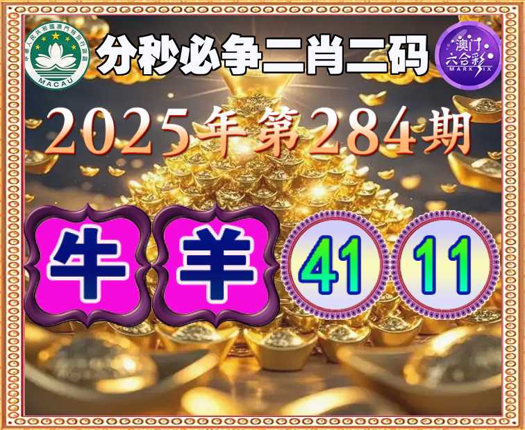 284期:【分秒必争】 🏆二肖二码🏆【牛羊】【41.11】开:牛41准