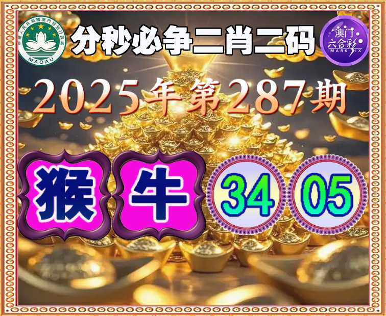 287期:【分秒必争】 🏆二肖二码🏆【猴牛】【34.05】开:猴34准