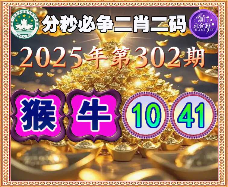 302期:【分秒必争】 🏆二肖二码🏆【猴牛】【10.41】开:猴22准