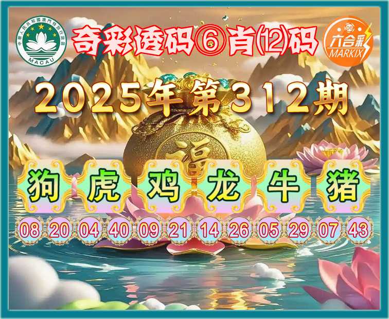 312期:《奇彩透码》 🌅⑥肖⑿码🌅【狗虎鸡龙牛猪】开:龙14准