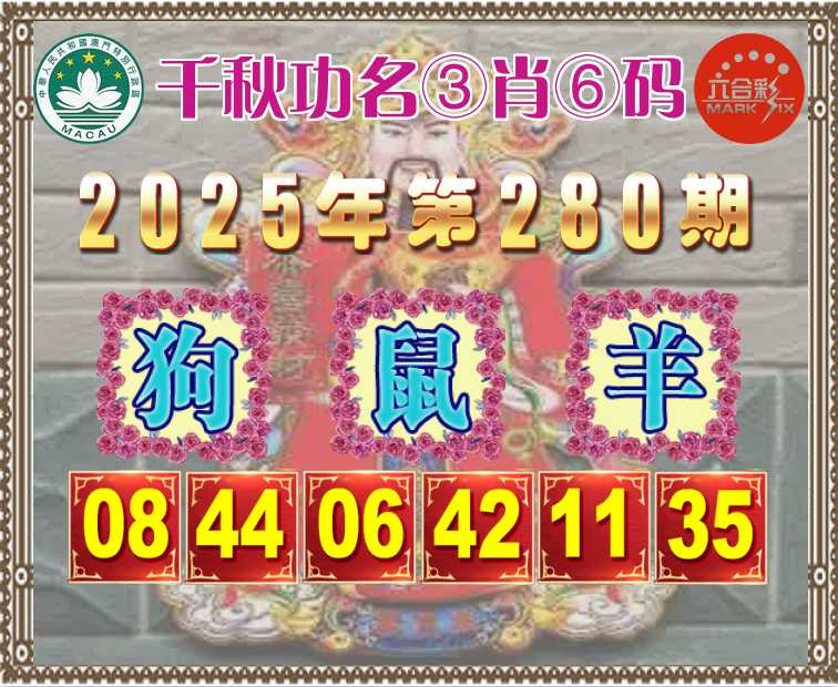 280期:《千秋功名》 🧧③肖⑥码🧧【狗鼠羊】开:鼠42准