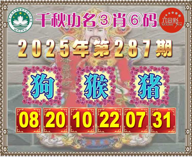 287期:《千秋功名》 🧧③肖⑥码🧧【狗猴猪】开:猴34准