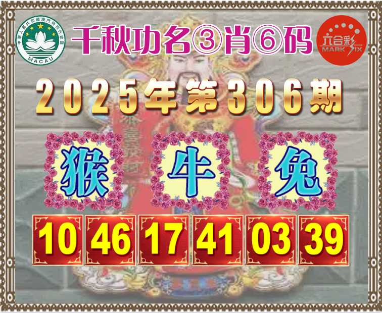 306期:《千秋功名》 🧧③肖⑥码🧧【猴牛兔】开:牛17准