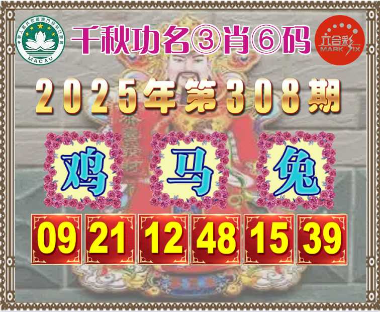 308期:《千秋功名》 🧧③肖⑥码🧧【鸡马兔】开:兔39准