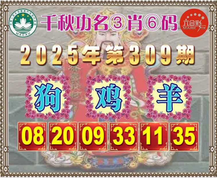 309期:《千秋功名》 🧧③肖⑥码🧧【狗鸡羊】开:鼠06错