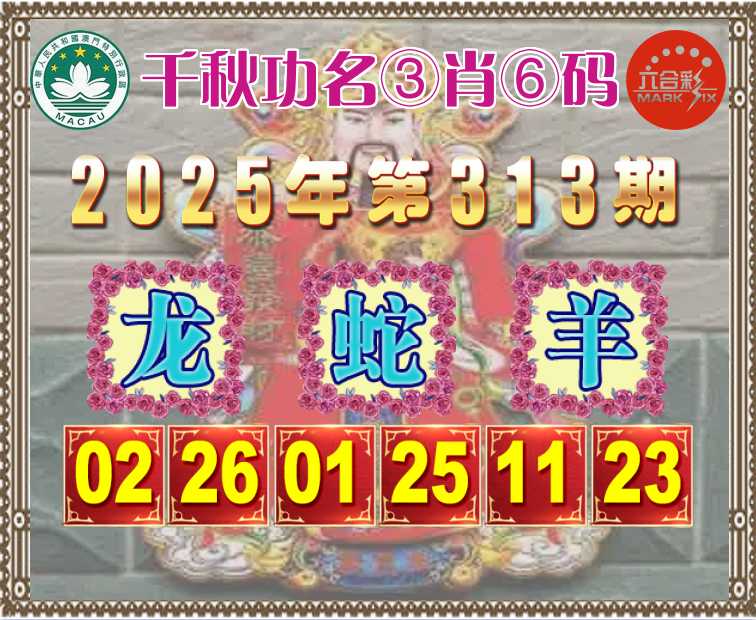 313期:《千秋功名》 🧧③肖⑥码🧧【龙蛇羊】开:龙38准