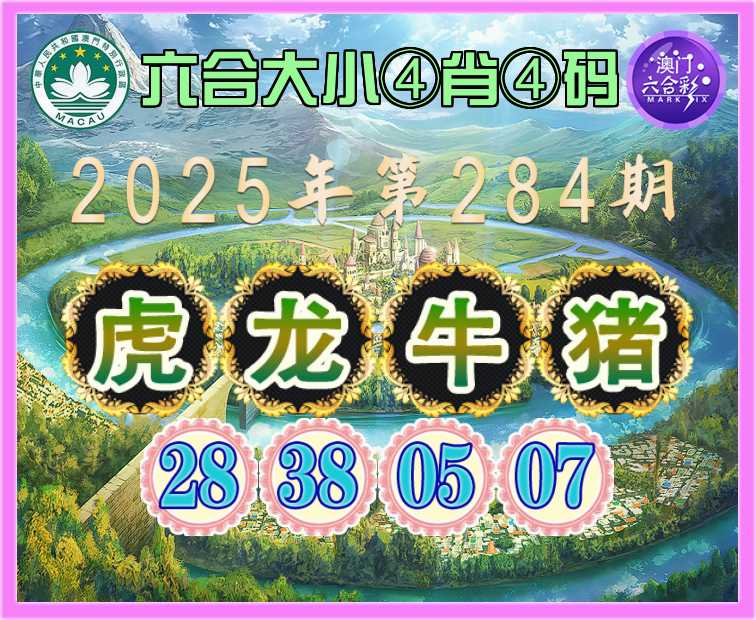 284期:《六合大小》 🥖④肖④码🥖【虎龙牛猪】【28.38.05.07】开:牛41准