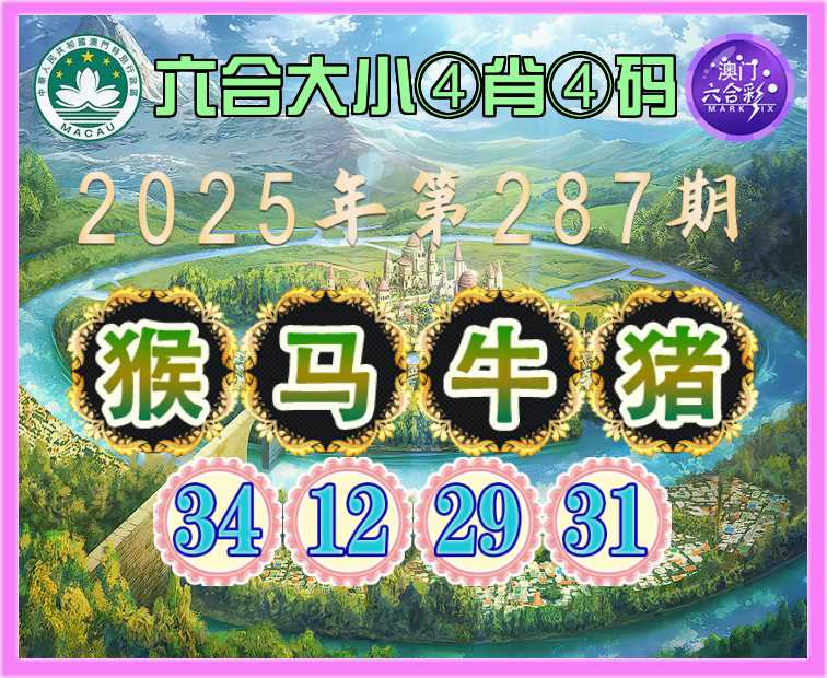 287期:《六合大小》 🥖④肖④码🥖【猴马牛猪】【34.12.29.31】开:猴34准
