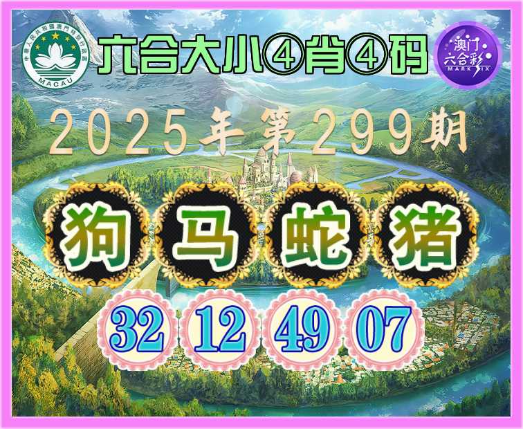 299期:《六合大小》 🥖④肖④码🥖【狗马蛇猪】【32.12.49.07】开:蛇49准