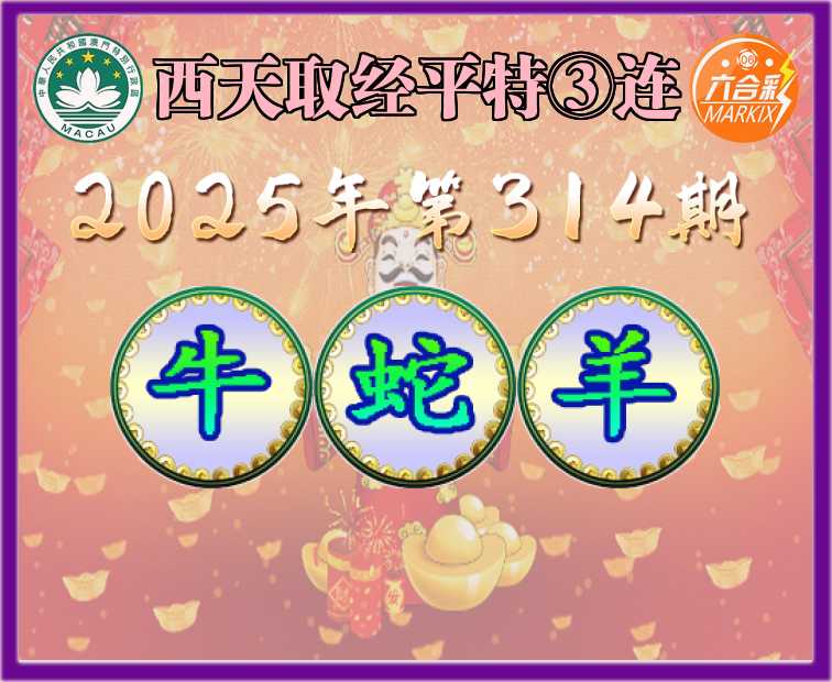 314期:『西天取经』 🍟平特③连🍟【牛蛇羊】开:00准