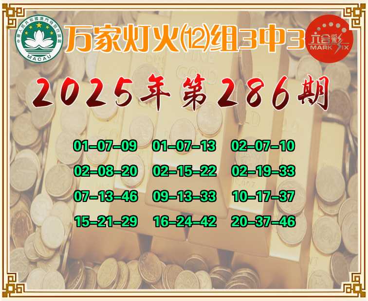 286期:【万家灯火】 🤩⑿组3中3🤩