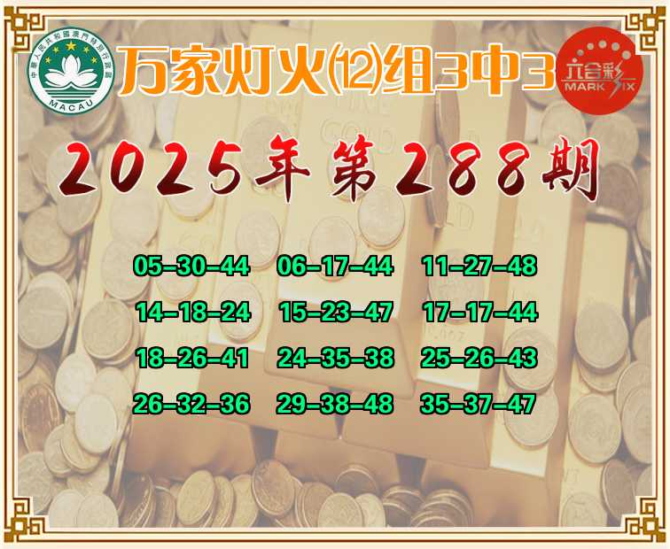 288期:【万家灯火】 🤩⑿组3中3🤩