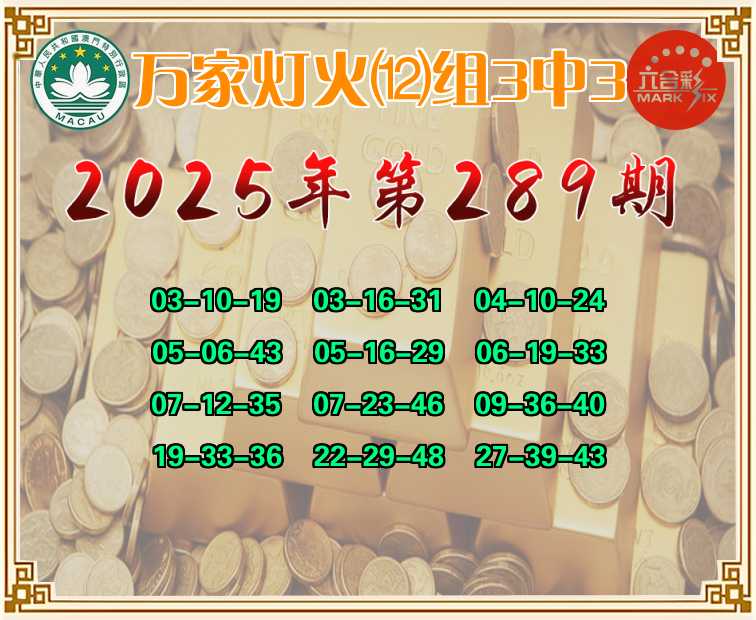 289期:【万家灯火】 🤩⑿组3中3🤩