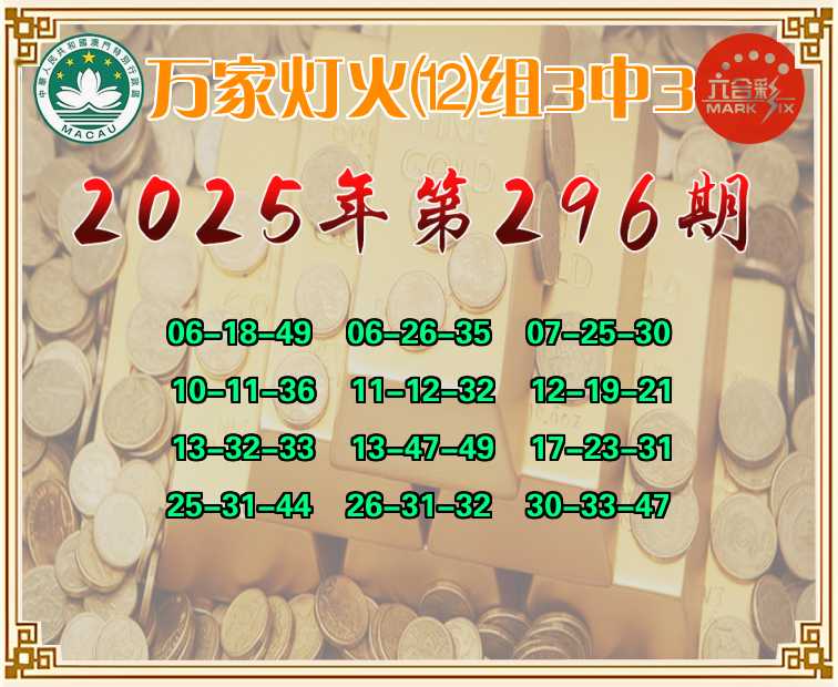 296期:【万家灯火】 🤩⑿组3中3🤩