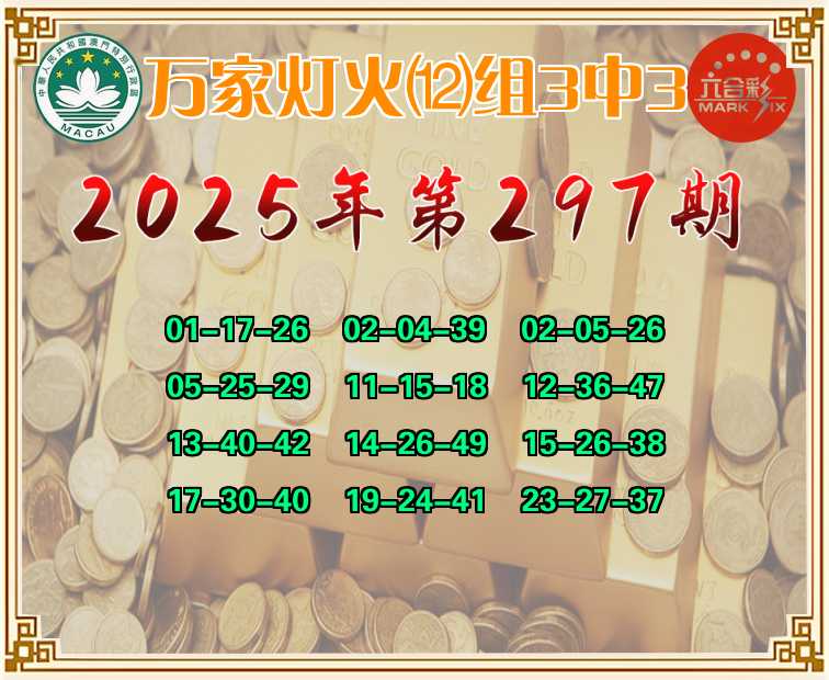 297期:【万家灯火】 🤩⑿组3中3🤩