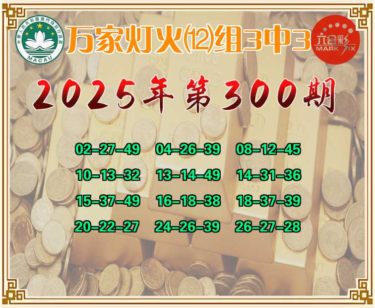 300期:【万家灯火】 🤩⑿组3中3🤩