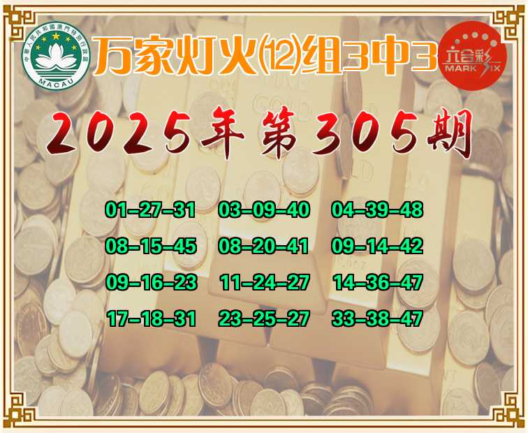 305期:【万家灯火】 🤩⑿组3中3🤩
