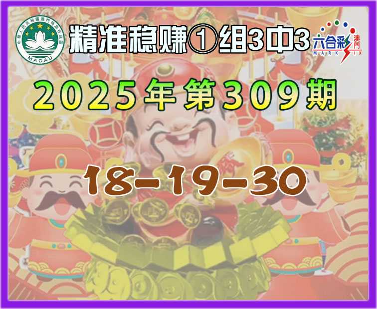 309期:『精准稳赚』 🥉①组3中3🥉【18-19-30】