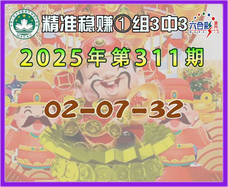 311期:『精准稳赚』 🥉①组3中3🥉【02-07-32】