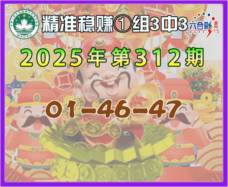 312期:『精准稳赚』 🥉①组3中3🥉【01-46-47】