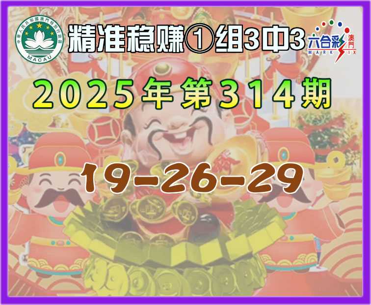 314期:『精准稳赚』 🥉①组3中3🥉【19-26-29】