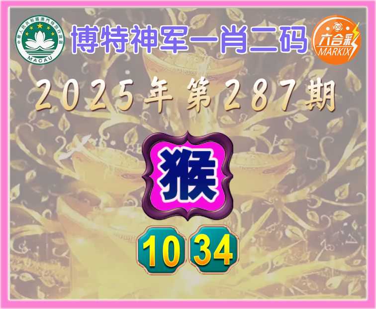 287期:〖博特神军〗 🐓一肖二码🐓【猴】【10.34】开:猴34准