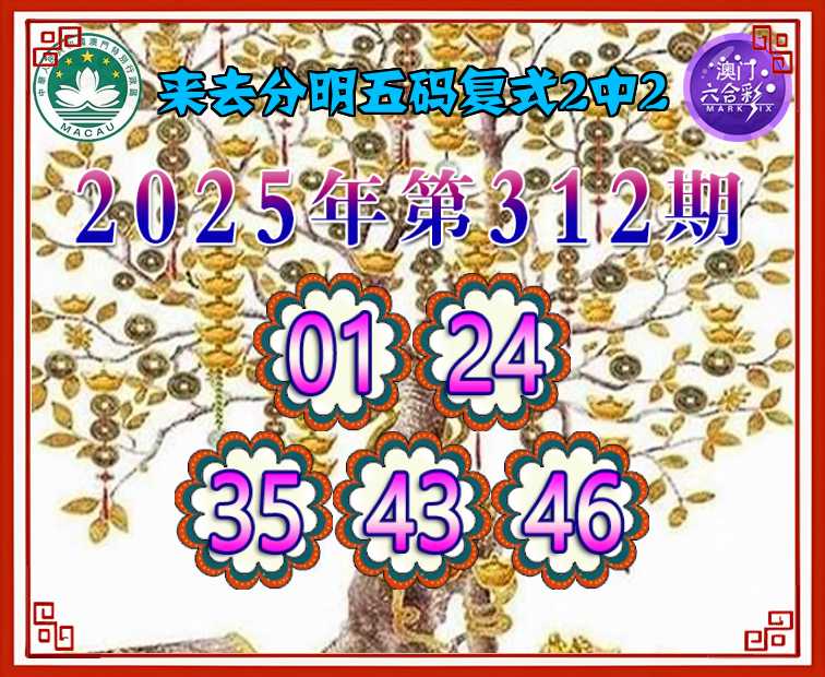 312期:🥉来去分明🥉五码复式2中2🥉